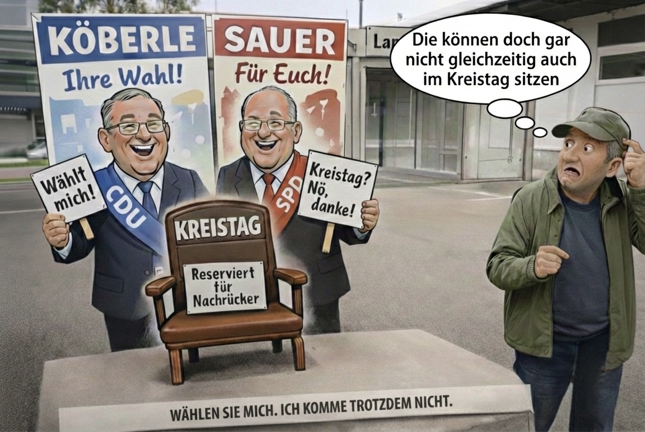 Formal ist das natürlich alles korrekt. Rechtlich sauber. Völlig erlaubt. Man darf kandidieren, auch wenn man das Mandat später nicht annimmt. Es steht ja nirgends, dass ein Spitzenkandidat am Ende tatsächlich im Kreistag sitzen muss. Wäre ja auch zu einfach.